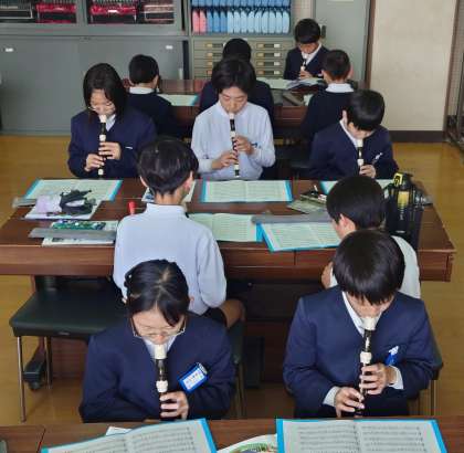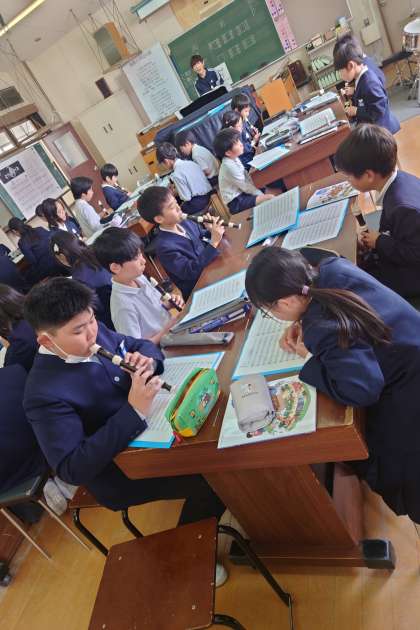 歌は「ビリーブ」、リコーダーは「いつも何度でも」を学習しました。