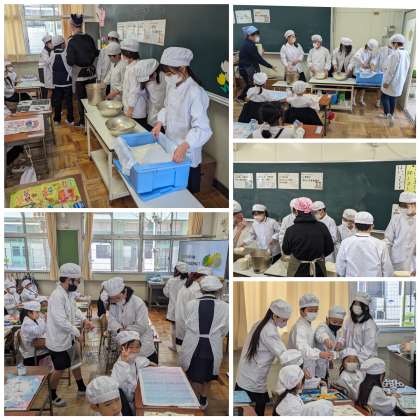 給食が楽しみ♪という子も多いことでしょう。6年生は1年生の配膳のお手伝いをしています。1年生は、配膳の様子を静かに見つめて学んでいます。6年生が「はいどうぞ」と牛乳を渡すと、「ありがとう♪」と1年生の声が聞こえました。