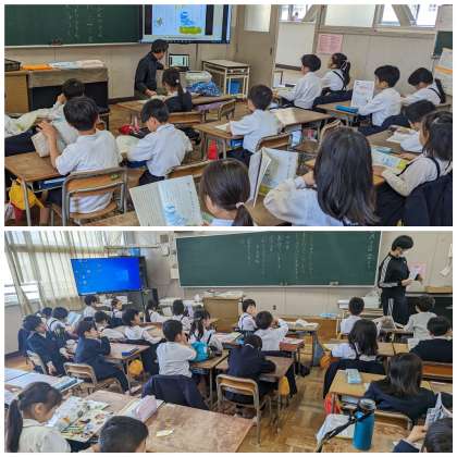 3組は、国語。先生やデジタル教科書の範読、友だちの音読の声、一人読み、ペア読み、一文読みリレー、黙読…など、「読む」ことを繰り返しましょう!