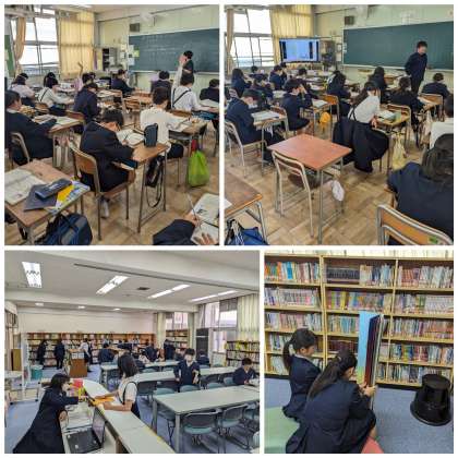 2組は、図書室で本の貸し借りをしていました。図書室には背の高さほどある本もあり、二人で持ちながら読んでいる子がいました。