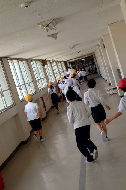 毎日の学校生活で、これらができることが、自分の命も、周りの人の命も守ることにつながるという話のあと、真剣さが増し、2次避難場所まで行くことができました。