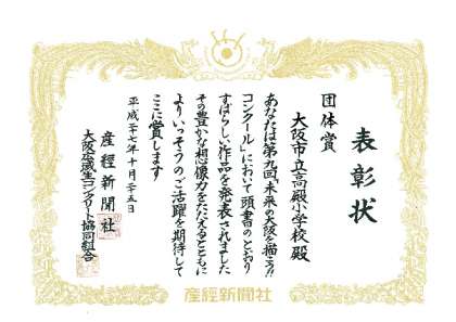 夏休みの絵画募集で「未来の大阪を描こう!!コンクール」に児童の作品を応募したところ、団体賞をいただきました。