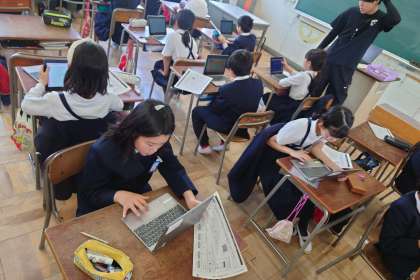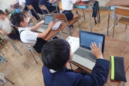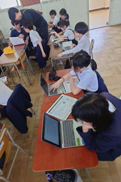 アンケートは端末から答えますが、70問以上の問いに、子どもたちは「大変や〜」と言っていました。