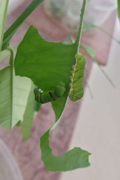 中庭のミカンの木には、今年もいっぱいアオムシが。