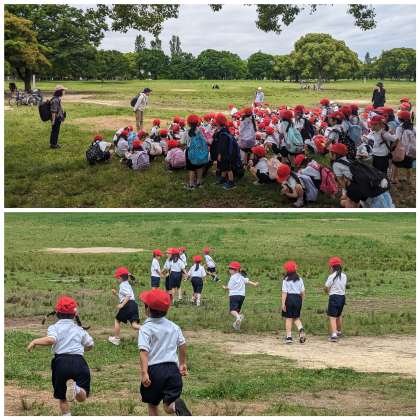 クラス写真を撮った後は、広場で遊びます!遊びの約束をしっかり聞くことができました。