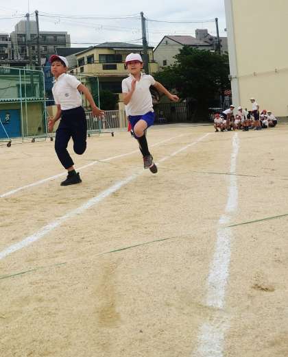 昨日の遠足の疲れなど、これっぽっちも残っていないようで、ソフトボール投げと50メートル走に全力で取り組んでいました。