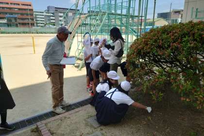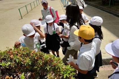 今日は、学校中の生き物、植物を見つけに探検、観察して回りました。