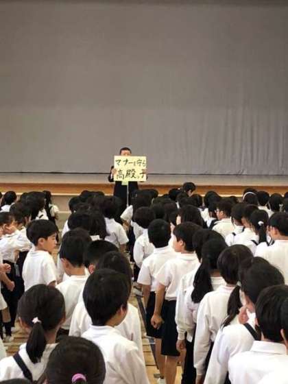 本日の全校朝会では校長先生からマナーを守ることの大切さと、握力の大切さの2つのお話がありました。また、全校朝会担当の先生からは今月の生活目標である友だちと仲良くすることについてお話がありました。