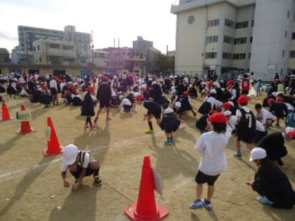 工事で講堂が使えないので、外での児童集会が続いています。