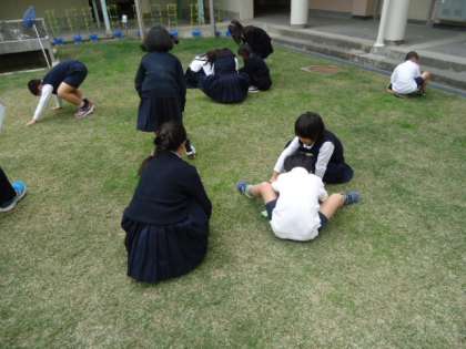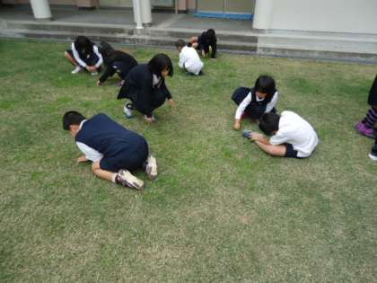今日は、掃除の時間に何人かが手伝ってくれたおかげで、ずいぶんと芝生本来の色にもどりましたが、まだまだ雑草との戦いは続きそうです…。