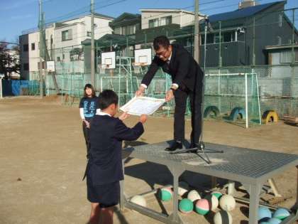 ※今日は、校外で優秀な成績をおさめた児童の表彰を行いました。