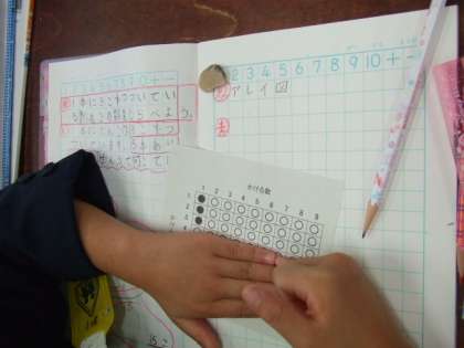 今日習った「3×5」と今まで習った「5×3」では、答えが同じでも、1本のくしにさした団子の数が3個か5個かでかけ算の意味が違ってきます。