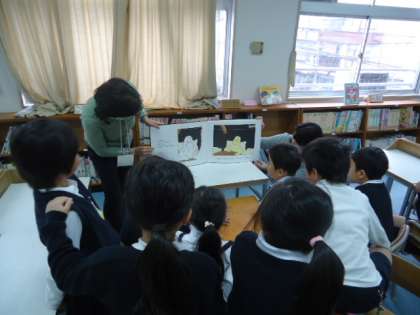 また、低学年図書室では、図書館ボランティアさんによる読み聞かせもありました。