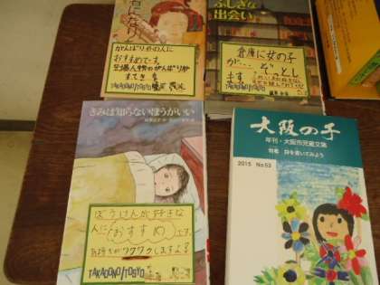 5年生の学級文庫では、児童が作ったPOPが本の世界に誘ってくれていました。