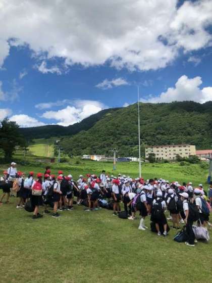 無事ハチ高原に到着しました。とても空気がきれいです。これから開舎式を行い、お昼ごはんを食べまし。