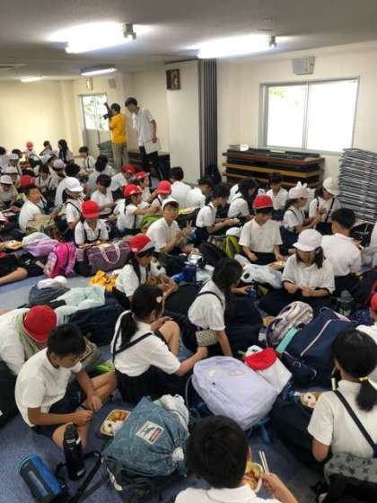 暑いため部屋の中で昼食です。