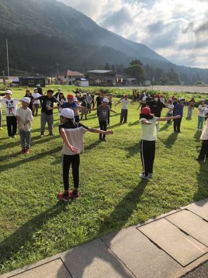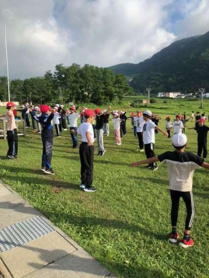 朝のつどいを行いました。健康観察して、ラジオ体操をしました。全員今日も元気です。