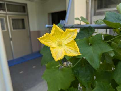 3枚目は中庭のへちま。ハチが花の中にいました。