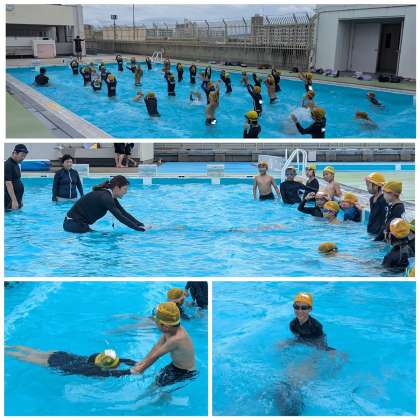 今日は「バディで遊ぼう!」と、伏し浮きロケットをひっぱったり、足の間くぐりをしたりしました。