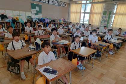 「みんなも夢に向かって努力しましょうね」と言われ、子どもたちは背筋を伸ばしていました。