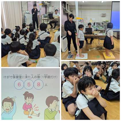 保健指導では、「学校で起きるけがの予防」と、「けがをしたときの始めの手当ての仕方」について、学習しました。