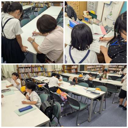 「おさらい」とは、旭区内の小学校で行われている児童の学習習慣や基礎学力の定着をめざした区の施策「放課後おさらい教室」のことです。3,4,5年生が対象で、保護者様からの申し込み、登録制です。本校では、学習支援サポーターの久保田先生と岡田先生が指導にあたっています。
