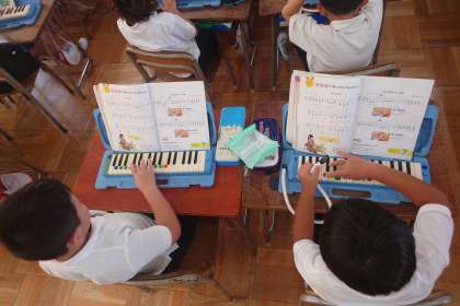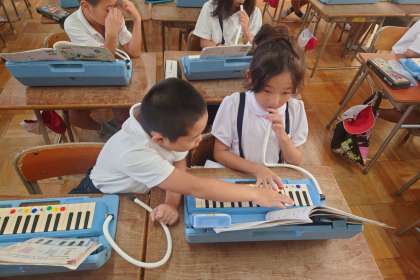 鍵盤ハーモニカで「ドレミのトンネル」を演奏しました。