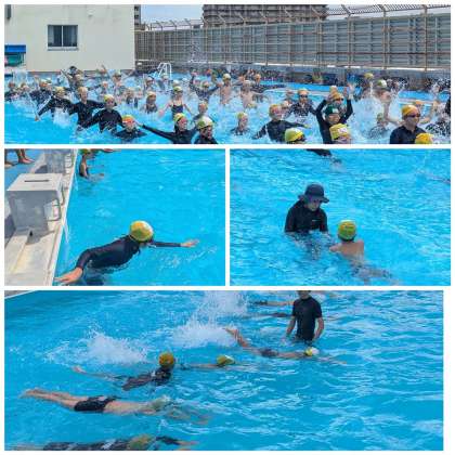写真は5年生。「今年最後のプールを思い切り楽しもう!プールも超楽幸意〜!」とはりきっていました!
