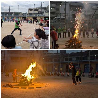 連合町会長様の合図のもと、「カメハメ波〜」と念を送ると、花火とともに、火が灯りました!!