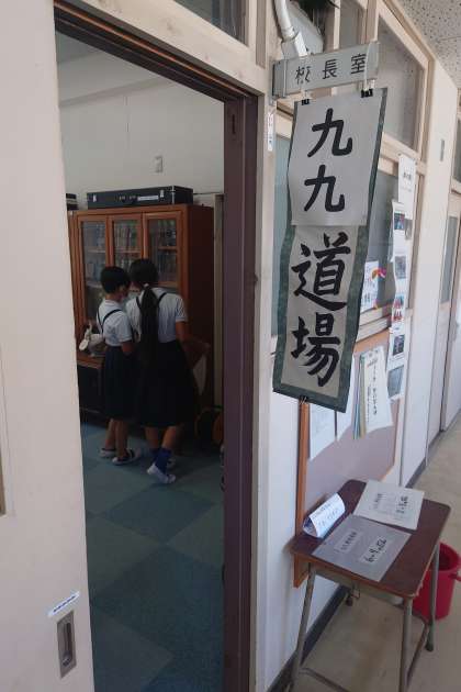 九九を唱えられるよう、校長先生に挑む子が来室しています。