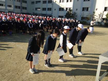 ※今日の児童朝会では、読書感想文を書いた児童の表彰を行いました。