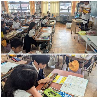 4年生はそろばんの学習をしていました。そろばんは、集中力が高まり、計算が早くなると言われています。