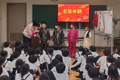 その他、漢字や民族衣装について教えてもらったり、日本語で言うと何でしょうクイズをしてもらったりして、中国のことをたくさん知ることができました。
