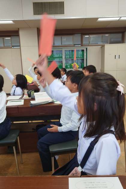 ビゼー作曲「かね」を聴いて、旋律の重なりのおもしろさを体を使って感じ取りました。