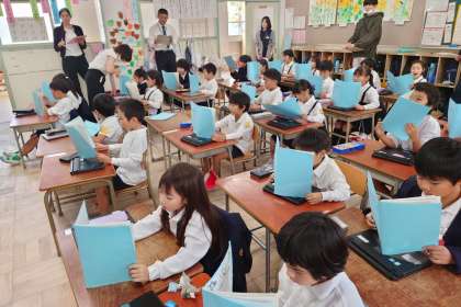 次のクラスでは、「きゃくせん」「フェリーボート」「ぎょせん」「しょうぼうてい」の四つの船の紹介されている順番について考えました。