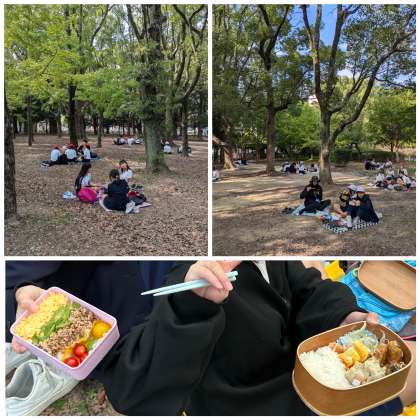 長居公園の近くでのんびりお弁当をいただきました!「見て!自分で作ったよ♪」という子もいました。彩りきれいで美味しそうです♪