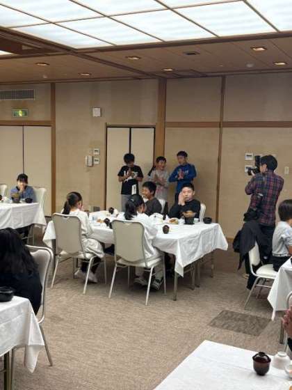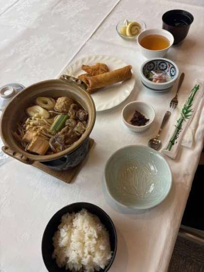 楽しみにしていた夕食の時間です。本日のメインは、すき焼きと揚げ物3兄弟です。感謝の気持ちを込めていただきます。