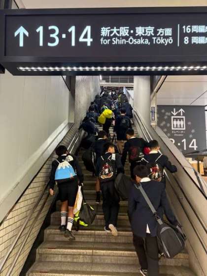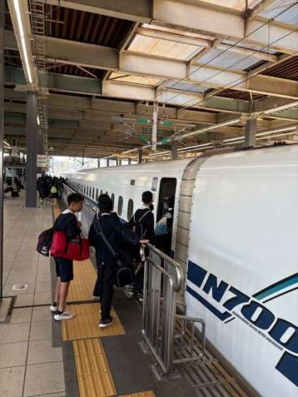 新幹線に乗りました。まもなく楽しかった広島を出発します。16時30分頃新大阪駅に到着予定です。