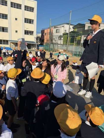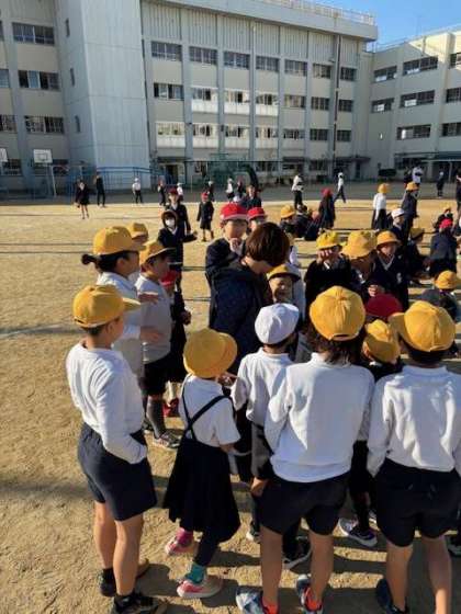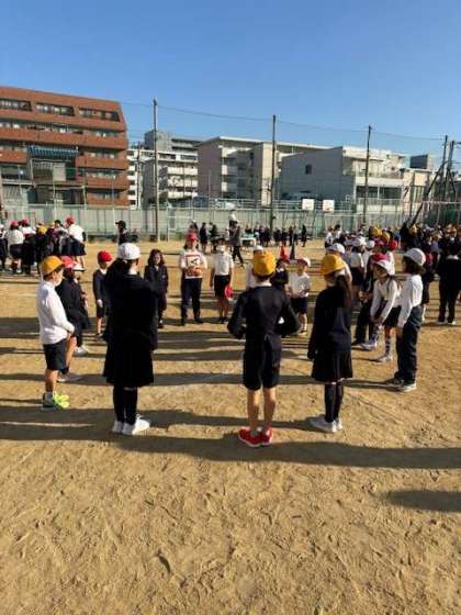今日の児童集会はグループを講堂組みと運動場組みに分けて、それぞれ内容の違う取り組みをしました。講堂では何が通ったかゲームをしました。ステージ上の幕の間を何が通過したかを当てるゲームです。運動場では先生借り物ゲームをしました。先生についてのヒントが書かれた紙を見て、そのヒントに合った先生を見つけるゲームです。どちらのゲームも協力しあい、楽しい活動になりました。