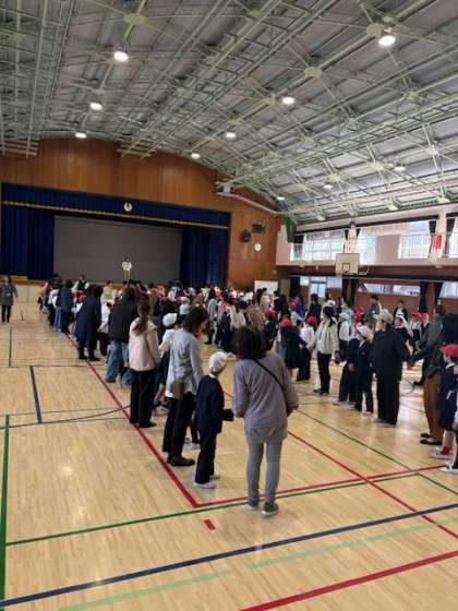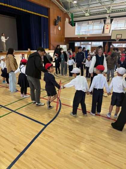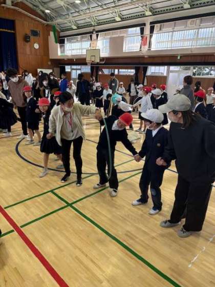 本日、5時間目に2年生のPTA親子ふれあい活動が行われました。たくさんの保護者の方々、PTAの方々のご協力のおかげで、活気のある活動となりました。2年生は「フラフープリレー」と新聞紙を使った「風船リレー」を行いました。どの子どもたちも笑顔で参加していました。勝負事の活動だったので、必死さも伝わってきました。