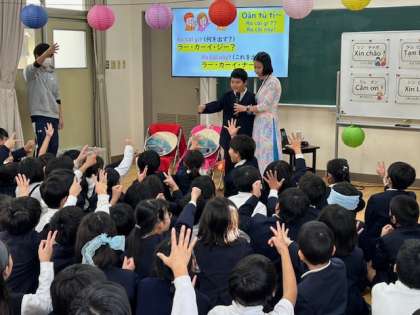 ベトナムの言葉や文化について楽しく学ぶことができました。ベトナムのじゃんけんでは、2学期にベトナムから来た友だちが前に立ち、みんなとじゃんけんをして盛り上がりました。