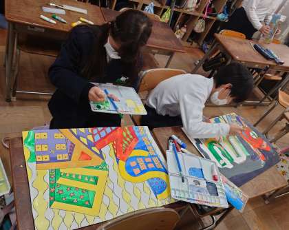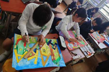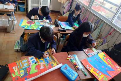 「デザインがむずかしいから時間がかかっちゃった」と言いながら、ラストスパート。完成に向けてがんばっています。