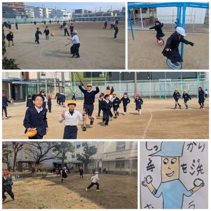 3時間目と4時間目の間の休み時間、元気に遊んだり体を動かしたりする子がいっぱい。子どもは風邪の子、ではなく、風の子ですね!