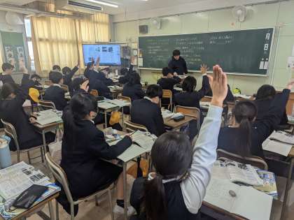 3組は、社会。戦後の日本についてまとめていました。手がたくさんあがっていました。