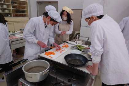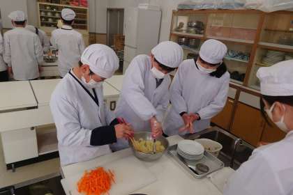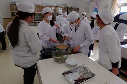 めあては、自分たちで考えて動き、ハンバーグ作りを成功させよう!です。