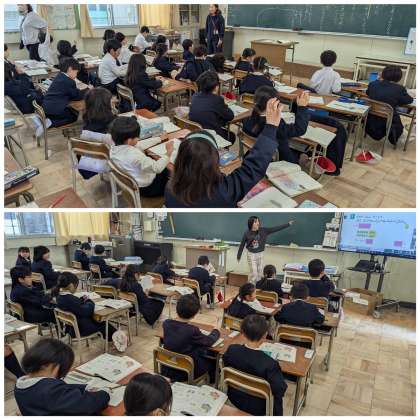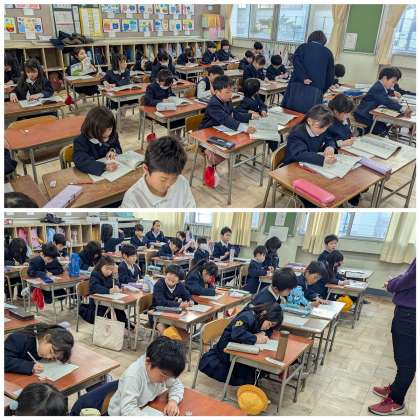 4組は生活。1年生でできるようになったことをふりかえりシートに書きました。