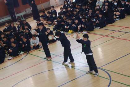 卒業式には出ない在校生たちが、6年生のみなさんに、精いっぱいのおめでとうとありがとうを伝えました。