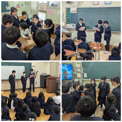 今年、毎日一緒に登校した登校班が集まり、「地域子ども会」を行いました。登校の反省と、リーダーの6年生からのメッセージを聞きました。今の班での集団登校は、3/17が最後です。残りわずかですが、班の絆を深められるといいですね。