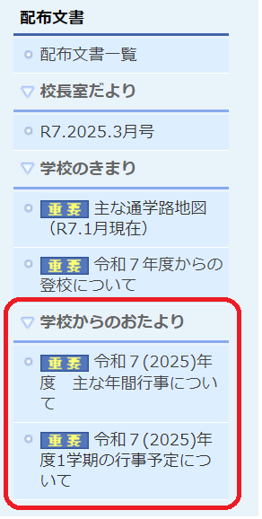 ホームページ右側の「配付文書一覧」に掲載してありますので、ご確認ください。