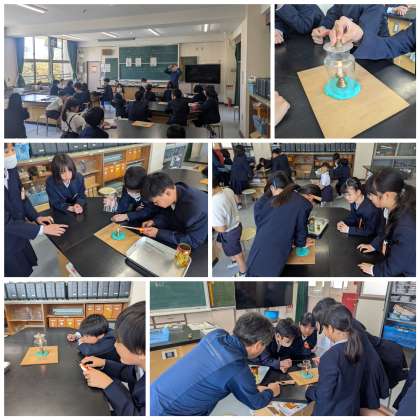 3時間目の理科室。「ものが燃えるしくみ」について実験を行いました。理科室での約束をしっかり守って、落ち着いて学習することができていました。